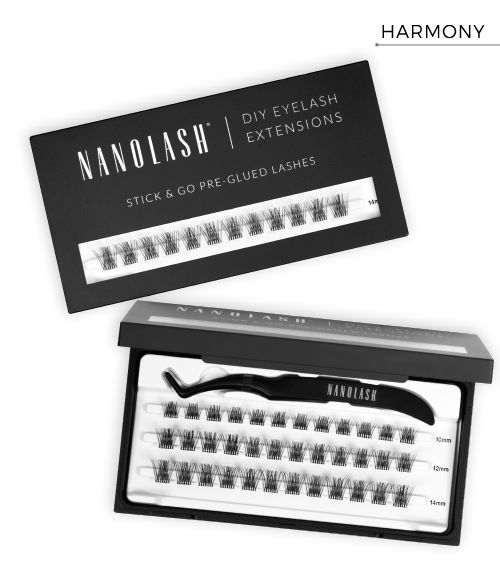 The DIY pre-glued lashes from Nanolash ensure the highest quality. Their resilient, deformation-resistant structure provides a perfect look that lasts up to 5 days. The cluster lashes are set on flexible bands coated with transparent glue, which makes the application quick and easy. The case contains 36 cluster lashes in three lengths: 10, 12 and 14 mm. Depending on the eye shape and size, they are enough for 4-6 applications. In addition, each case comes with an applicator for proper application of the pre-glued lashes.