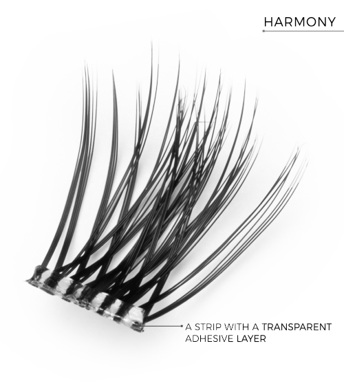 The Harmony pre-glued cluster lashes are an excellent choice if you want to emphasize your charm and feel confident. This style is popular among women who desire intense volume and a deeper lash line effect. Despite the bold effect, the lashes remain light and natural, imitating the effect of intense mascara perfectly.