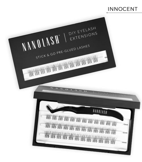 The DIY pre-glued lashes from Nanolash ensure the highest quality. Their resilient, deformation-resistant structure provides a perfect look that lasts up to 5 days. The cluster lashes are set on flexible bands coated with transparent glue, which makes the application quick and easy. The case contains 36 cluster lashes in three lengths: 10, 12 and 14 mm. Depending on the eye shape and size, they are enough for 4-6 applications. In addition, each case comes with an applicator for proper application of the pre-glued lashes.