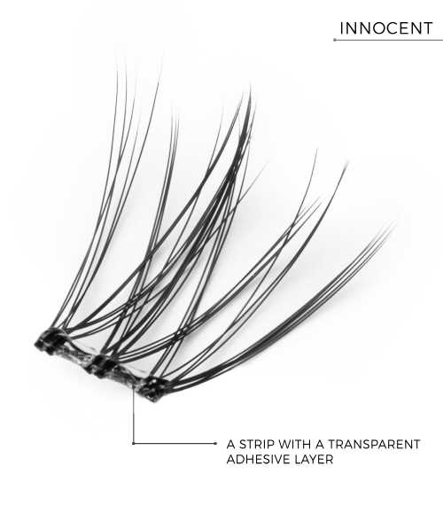 The Innocent lashes are delicate and subtle, taking inspiration from 2D and 3D volumes. The synthetic hairs form a spectacular fan, and their design alludes to the popular lash lift effect loved by women. The Stick & Go Innocent style is an excellent choice for everyday, natural makeup that suits any beauty type, regardless of age.